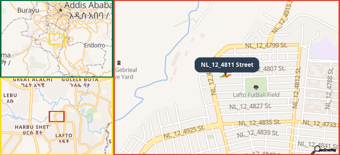 Map showing the address of NL_12_4811 Street in three different zoom levels.